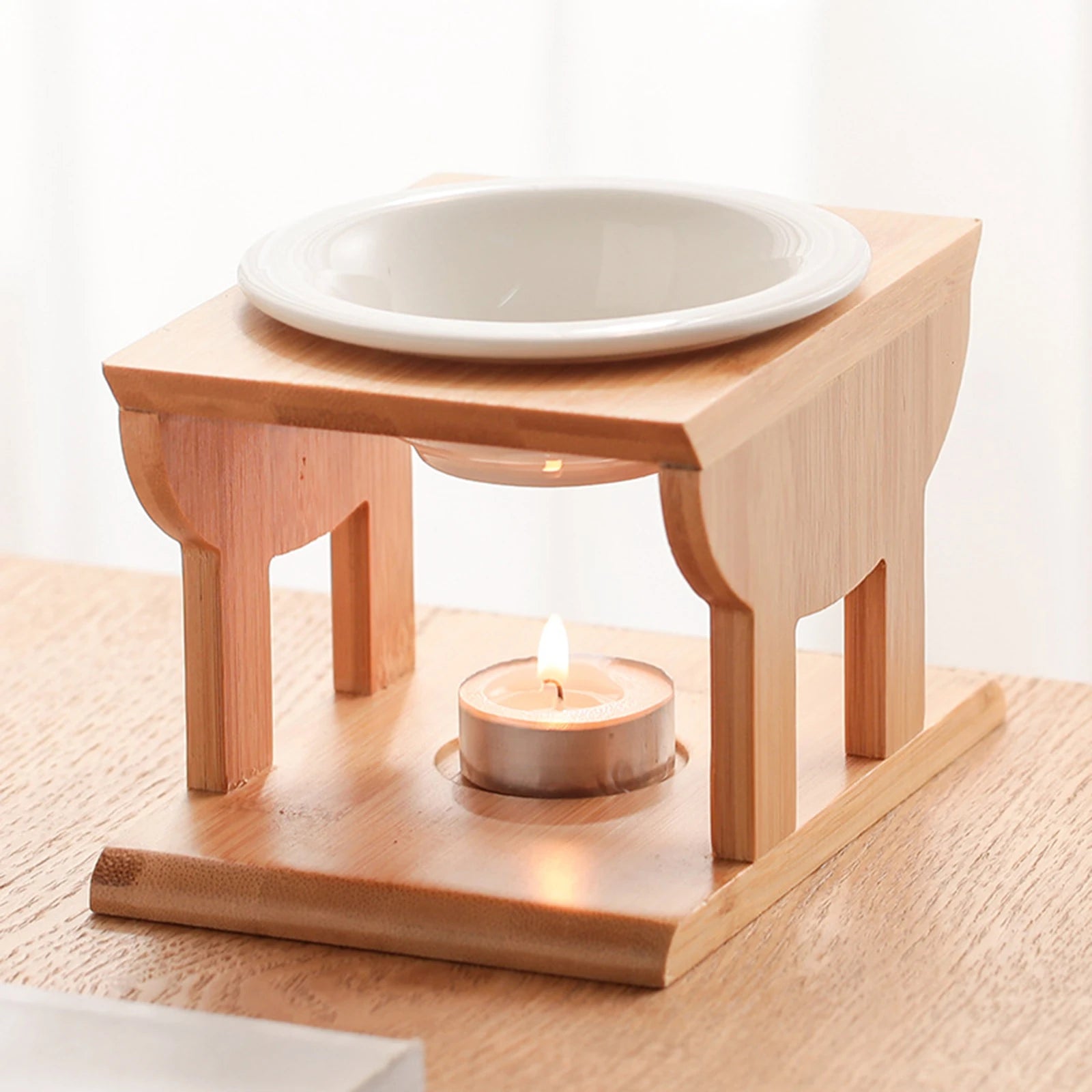 【RELIABLE MATERIAL】: The tealight oil burner for melting and essential oil is made for bamboo wooden with a ceramic bowl. The premium bamboo is sturdy and durable. The wooden frame of natural color with exquisite finishing nicely blends into all types of home decor.